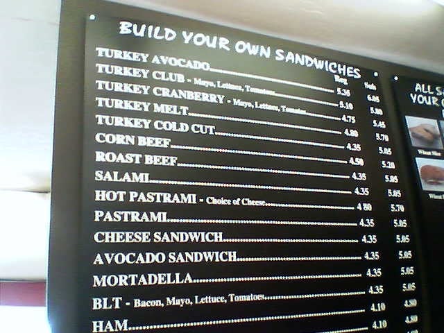 Mayo, mustard, lettuce, tomatoes, pickles, onions, pepperoncini, sprouts, and avocado.