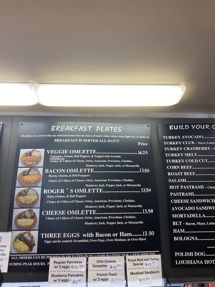 Roger’s Deli & Donuts offers a diverse menu featuring classic deli sandwiches, plates of pancakes, bagels, and a wide variety of donuts. Customers rave about the efficient service, eclectic ambiance, and delicious options for breakfast. The outdoor seating area with roaring fires creates a unique dining experience for all patrons, from military personnel to tech nerds and families. The extensive menu can be overwhelming at first, but customers love the sensory overload of choices. Highlights include the Thai iced tea, breakfast bagel sandwiches, and innovative donut flavors like blueberry cake and bacon maple. The restaurant attracts a diverse crowd, making it a staple in the community. With quick service, reasonable prices, and a welcoming atmosphere, Roger’s Deli & Donuts is a must-visit spot for breakfast or brunch.